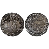 Henry VIII (1509-1547) groat, mm. castle (1509-1526). First issue with bust of Henry VII, London Mint. [2.88g, S.2316]