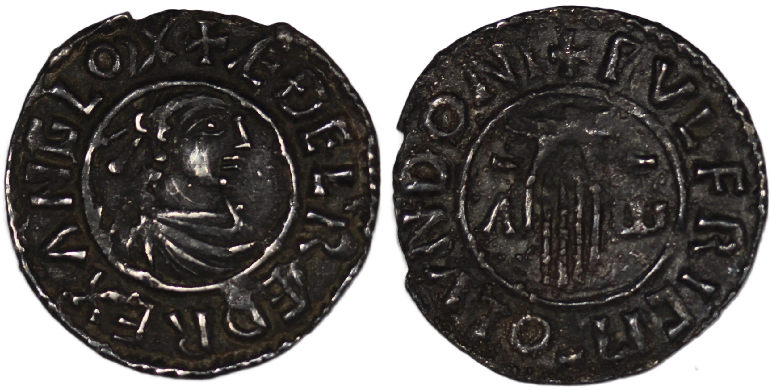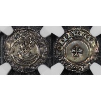 Late Anglo-Saxon coinage, Aethelred II (978-1016) first hand type penny. Mint/moneyer PVLFRIC on LVNDON. Small edge nibble obverse otherwise a pleasing example. [1.54, S.1144]
